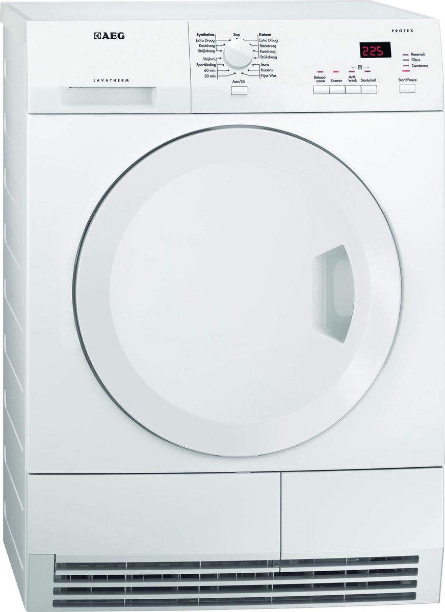 De Aeg T61270AC is een condensdroger uitgevoerd met een trommelinhoud van 7 kg en een energieklasse B label. Deze condensdroger is verder voorzien van uitgestelde starttijd en weergave van de resterende looptijd.