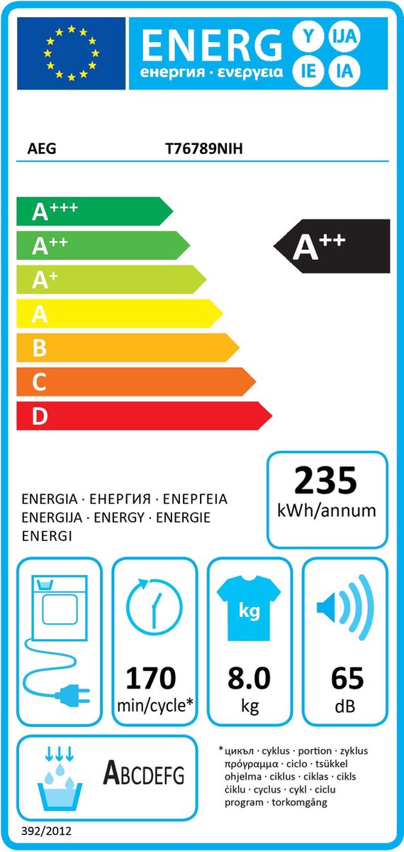 AEG T76789NIH warmtepompdroger 8 kg A++ Wit