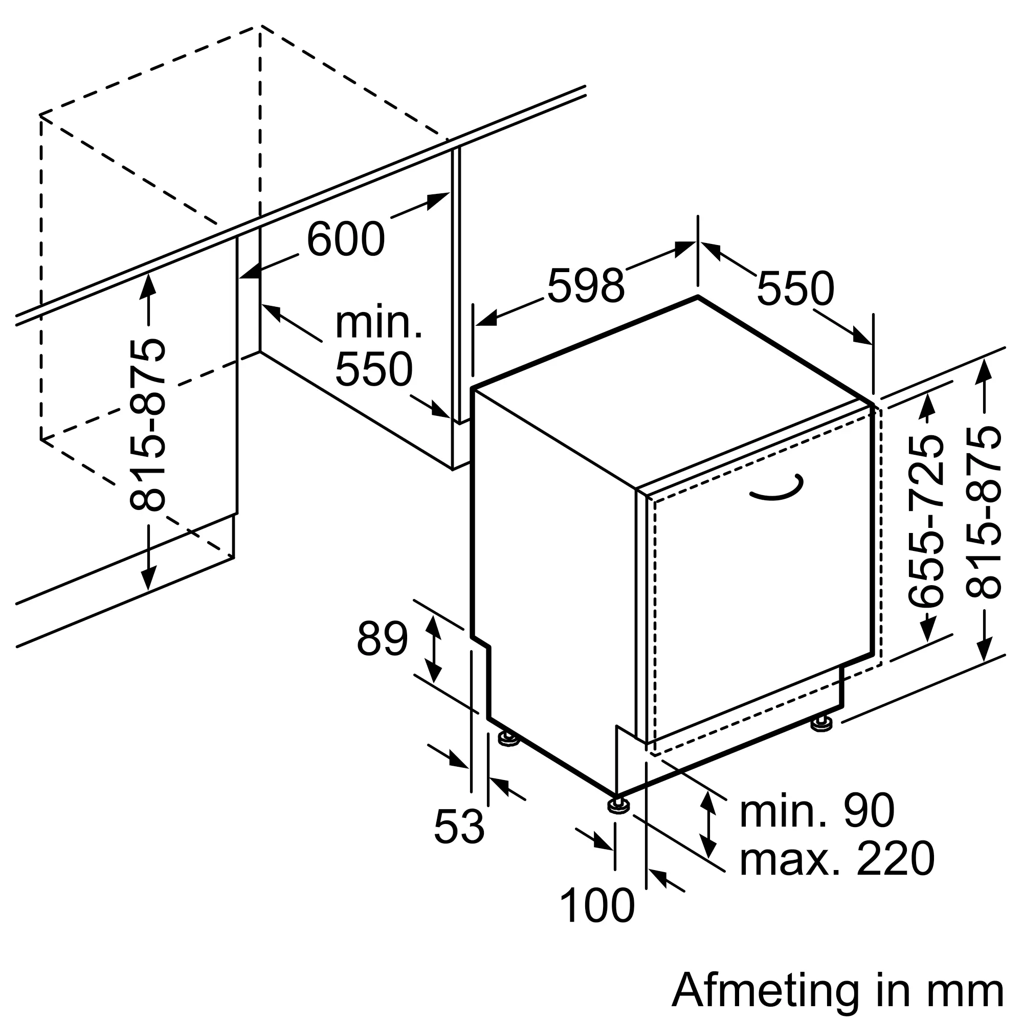 - Minimale hoogte frontpaneel: 653 mm