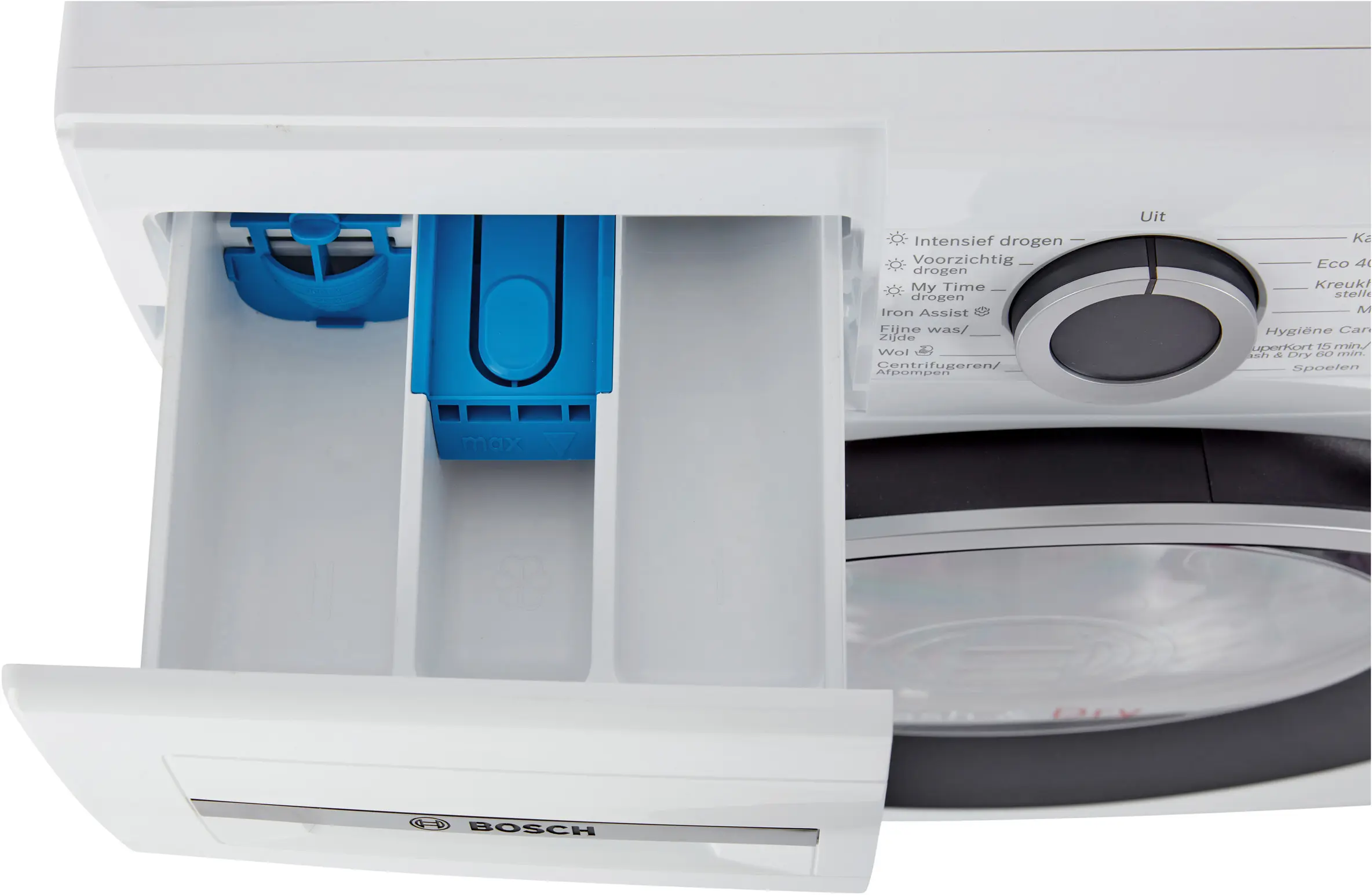 De Bosch WNG24430NL was-droogcombinatie beschikt over diverse programma’s voor verschillende soorten was. De bediening is eenvoudig dankzij de draaiknop en het display. Functies zoals startuitstel en resttijdindicatie bieden extra gemak.