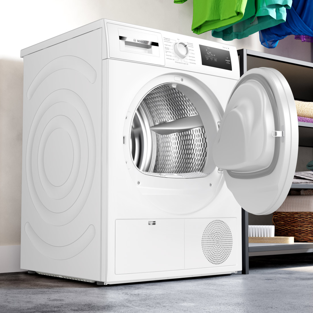 De Bosch WTG864H2 condensdroger combineert gebruiksgemak, capaciteit en betrouwbare prestaties in één praktisch apparaat.