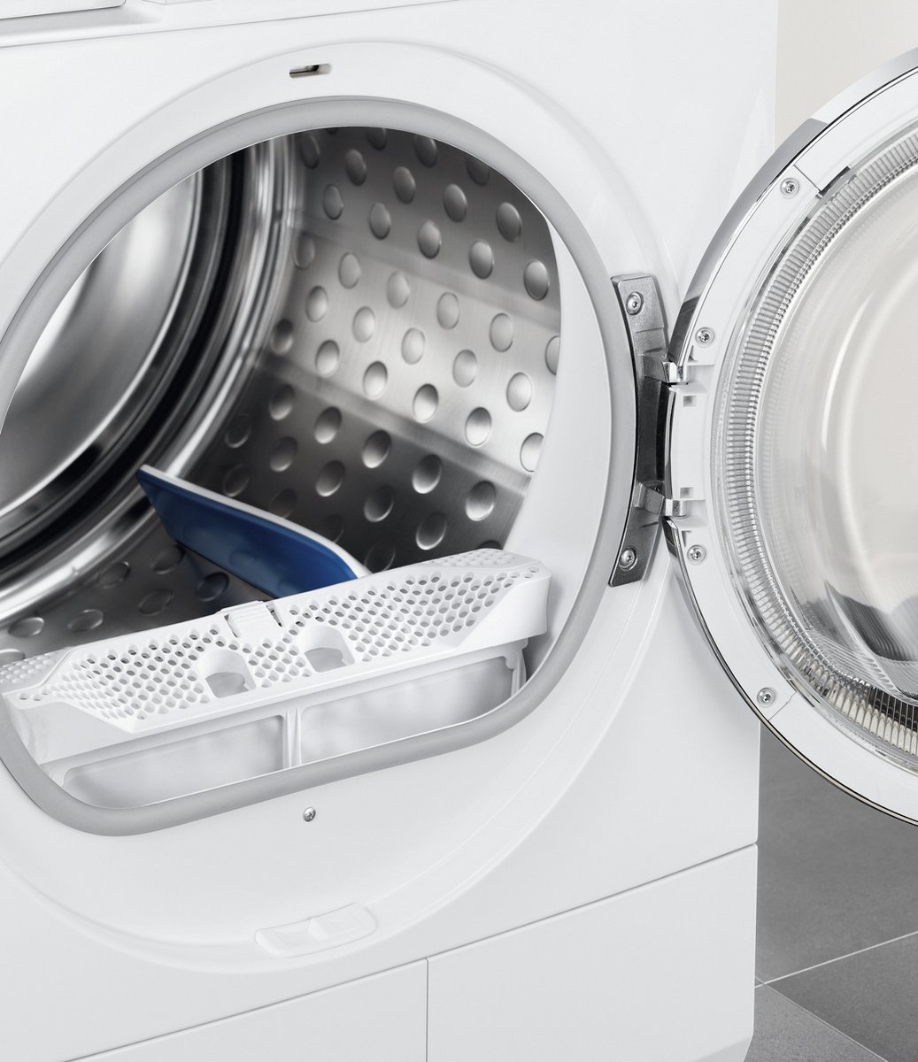 Het DelicateCare-systeem past temperatuur en trommelbewegingen aan op het type stof. Hierdoor blijven delicate materialen zoals wol, zijde en fijne synthetica langer mooi. De slimme vochtsensoren meten continu hoe droog je was is en stoppen het programma automatisch zodra het gewenste droogresultaat is bereikt. Dit voorkomt overdrogen en onnodig energieverbruik.