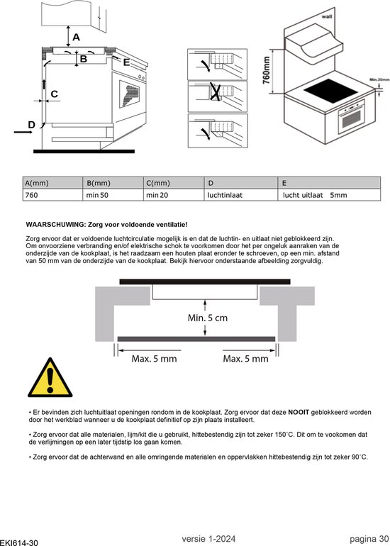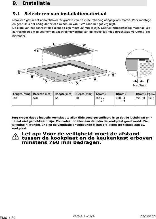 - Minimale hoogte frontpaneel: 770 mm