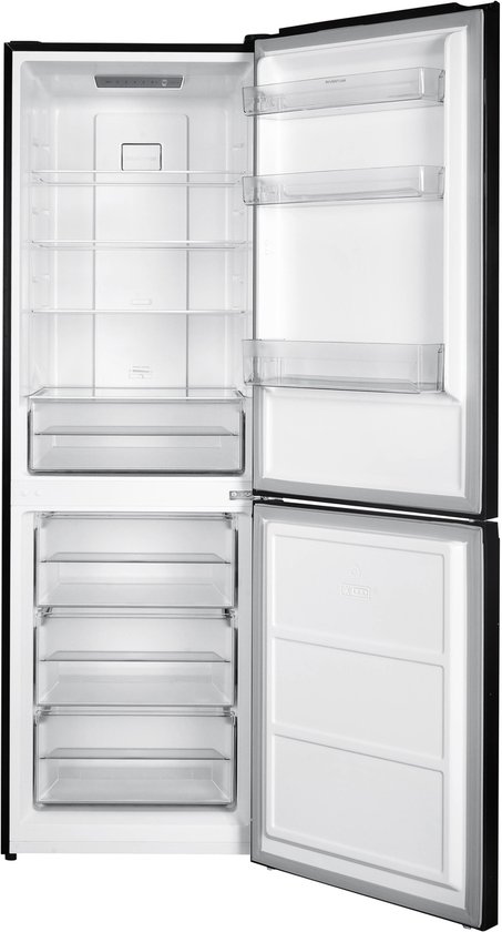 De Inventum vrijstaande koel- vriescombinatie KV1840B met energieklasse C heeft een inhoud van 327 liter. Het ruime koelgedeelte van 221 liter heeft een digitale thermostaat, led-verlichting en een superkoelenstand. Daarmee kun je grote hoeveelheden voedsel snel koelen en daardoor langer bewaren. Je hebt genoeg ruimte voor al je etenswaren op de 4 glazen draagplateaus, in de transparante groentelade en de 3 deurvakken waarvan 1 flessenvak. Het 4 sterren, No Frost vriesgedeelte van deze combi heeft een inhoud van 106 liter. De temperatuur van de vriezer kun je apart instellen. Het invriesvermogen is 5 kg per 24 uur. Dankzij de supervriezenstand kun je etenswaren snel invriezen. Bij dit apparaat ontvang je ook 1 eierrekje en een ijsblokjeshouder. De legplanken, lades en deurvakken zijn eenvoudig te verwijderen, zodat je ze goed kunt schoonmaken.