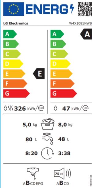 LG W4X1085NWB | Wasdroogcombinatie | 8/5 kg | Steam