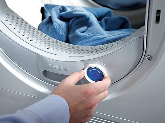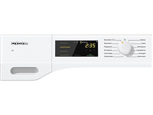 De Miele TCB150WP warmtepompdroger beschikt daarnaast over PerfectDry-technologie, die het vochtgehalte nauwkeurig meet en het programma automatisch stopt zodra de gewenste droogtegraad is bereikt. Dit voorkomt overdrogen en beschermt je kleding tegen slijtage.