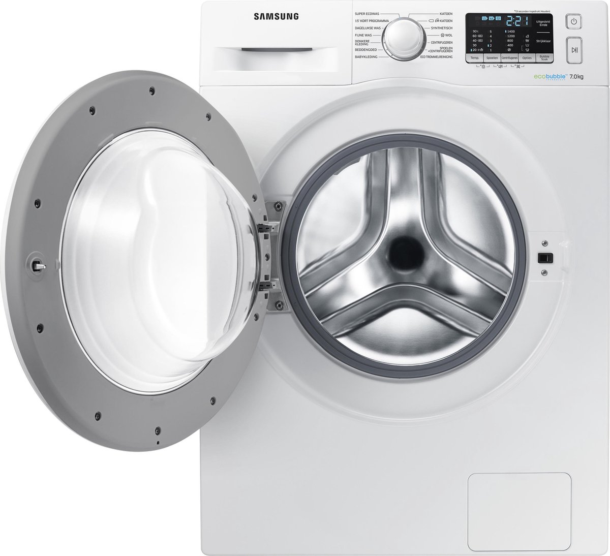De Samsung WW70J5585MW wasmachine wast door de schuim bubbels van EcoBubble nog krachtiger en zuiniger. Heb je hardnekkige vlekken? gebruik dan het BubbleSoak programma om de vlekken te verwijderen. Door de Diamond Drum wordt kleding veiliger gewassen zonde schade op overtollig kreuk op te lopen. De wasmiddellade wordt na elke wasbeurt automatisch schoon gespoeld voor een hygiënisch en schone lade.