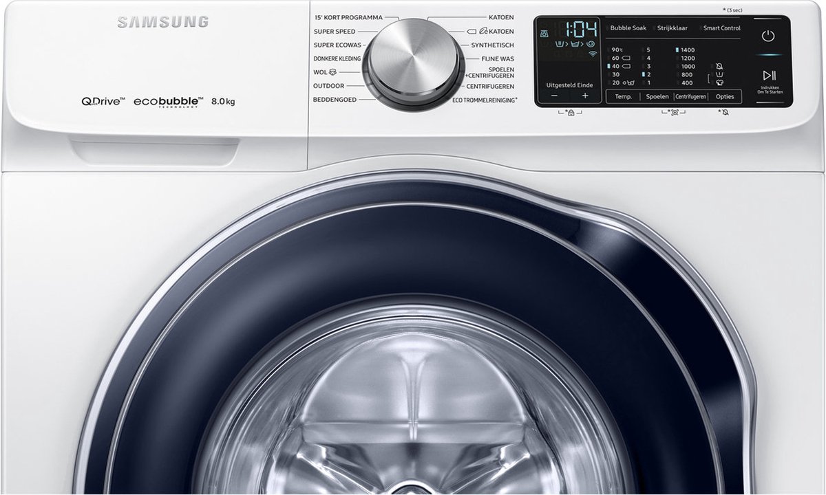 De Samsung WW8BM642OBW Q-Drive is een geavanceerde voorlader wasmachine met een vulgewicht van 8 kg, ontworpen voor huishoudens die snelheid, energiezuinigheid en waszorg willen combineren. Dankzij de innovatieve Q-Drive technologie was deze machine tot 50% sneller zonder in te leveren op wasresultaat of energieverbruik.