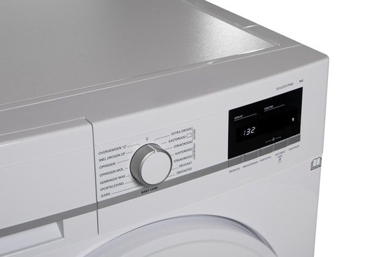 Met diverse droogprogramma’s voor katoen, synthetisch en gemengde was biedt deze droger flexibiliteit voor verschillende soorten textiel.