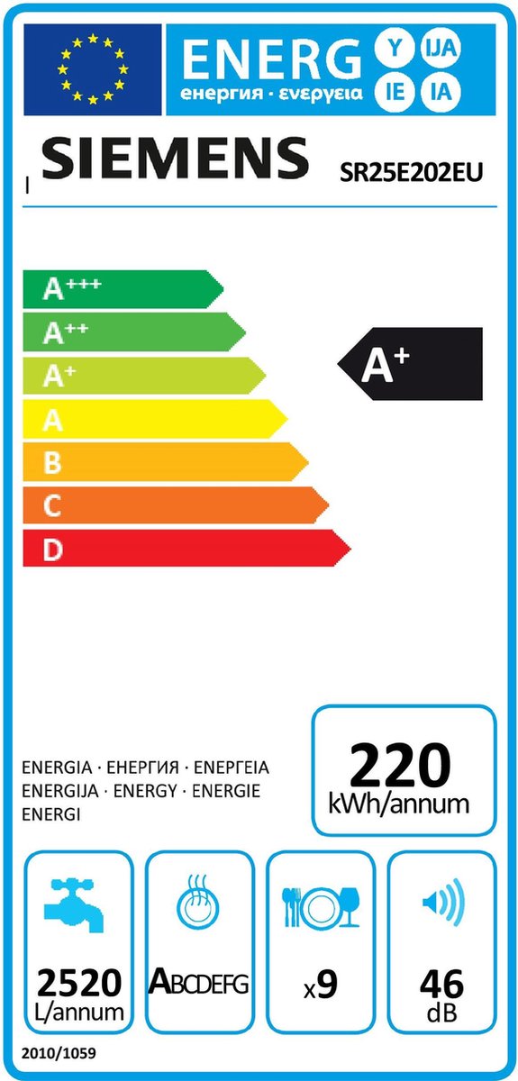 Verbruik in Eco 50°C programma¹: 220 kWh / 2520 liter per jaar