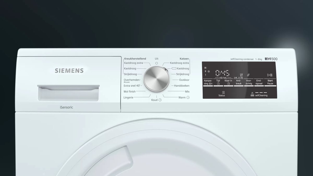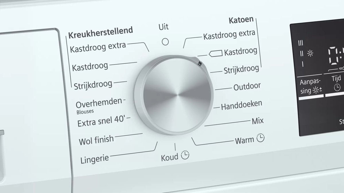 Voor iedere was een geschikt programmaDeze droger beschikt over 11 verschillende droogprogramma’s. Naast de standaard programma’s is er ook een speciaal programma ontwikkeld voor je outdoor en sportkleding en Lingerie. Deze is extra voorzichtig met het kwetsbare textiel. Daarnaast is er ook een speciaal programma voor wol. Deze werkt helemaal optimaal in combinatie met de Wol korf. Wil je toch nog snel dat ene truitje wassen en drogen voordat je weg gaat? Dit model van Siemens beschikt over een SuperKort 40 programma. Dit programma zorgt er voor dat je was al binnen 40 minuten droog is. De kwaliteit van het drogen is hetzelfde als wat u van Siemens bent gewend. Hij behandeld je wasgoed voorzichtig dankzij de geoptimaliseerde temperatuurregeling en een aangepaste afkoelfase.